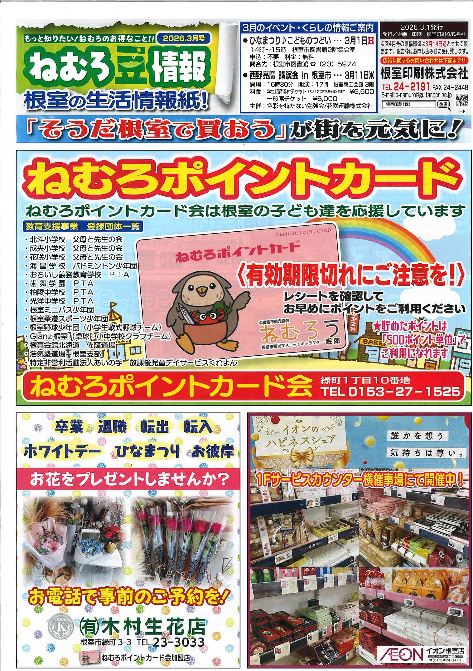ねむろ豆情報3月号に掲載されました!